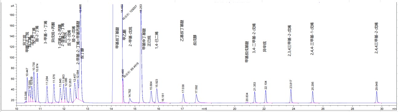 分析标准号:ASTM D7423-2016e1 采用气相色谱法和火焰离子化检测法测定C2, C3, C4和C5烃基质中充氧剂